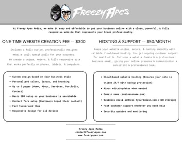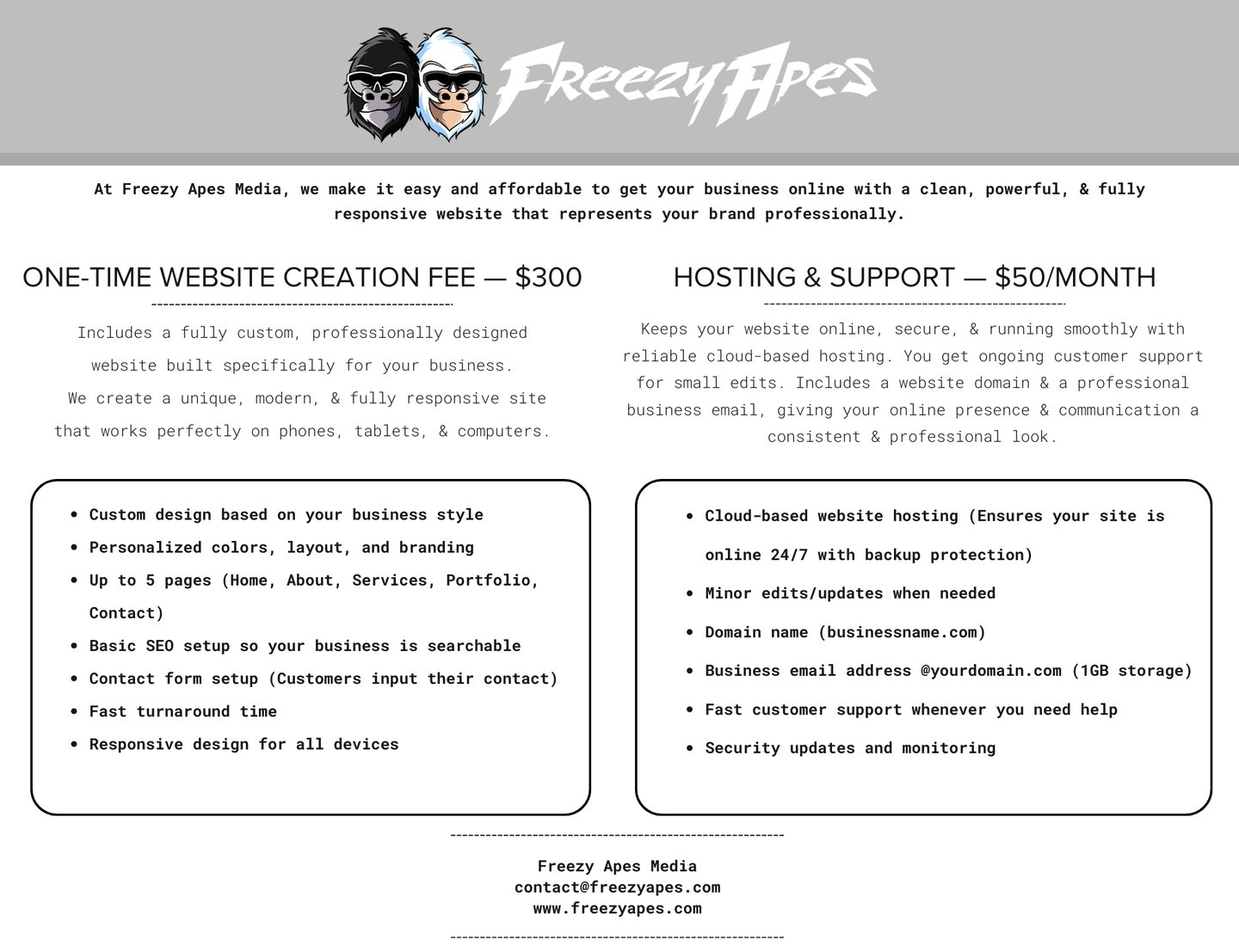 At Freezy Apes Media, we create custom, modern websites tailored to fit your business/brand. Our websites are clean, fast, and fully responsive — that work smoothly on all devices.
